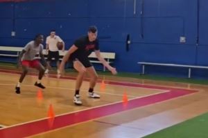 与小个球员一起练脚步 开拓者官博晒克林根休赛期最新动态