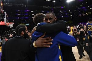 老队友了!小贾巴里和申京赛后和小凯文·波特寒暄叙旧