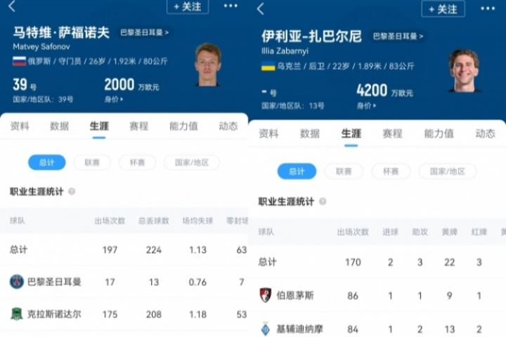 巴黎去年签俄罗斯门将萨福诺夫🤝🤝今年签乌克兰中卫扎巴尔尼