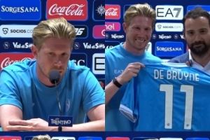 那不勒斯新11号!德布劳内与体育总监手持球衣亮相球员发布会