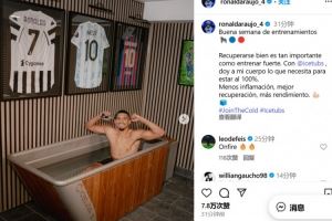 阿劳霍晒冷疗照:一周的训练很顺利,良好的恢复和训练一样重要