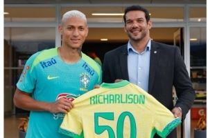 体育资讯9月3日讯 理查利森获赠为巴西队出战50场里程碑纪念球衣,他在社交媒体上发表感想。