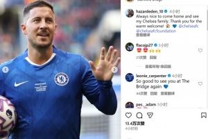 重返斯坦福桥参加传奇赛,阿扎尔:见到切尔西大家庭总是很开心