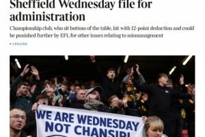 体育资讯10月24日讯 据《泰晤士报》报道,深陷危机的英冠俱乐部谢菲尔德星期三已于周五上午正式向英国税务海关总署提交文件,申请进入管理程序。